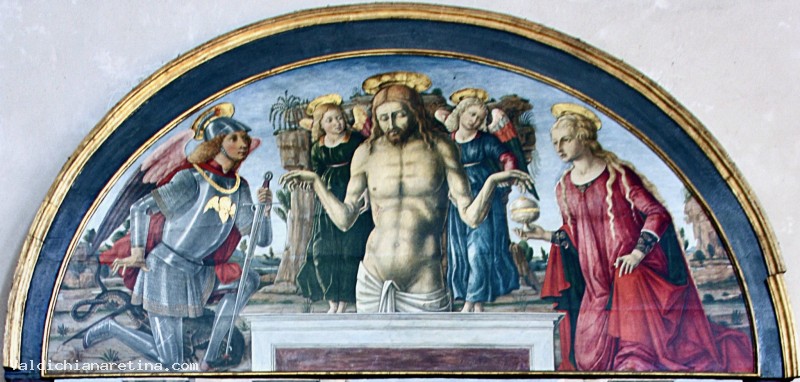 La lunetta è collocata sopra la tavola. Adorazione del Bambino di Francesco di Giorgio Martini.