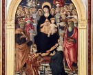 Dietro di loro numerosi angeli che sorreggono vassoi con la neve caduta a Roma il 5 agosto del 358 sul sito dove papa Liberio decise di costruire la Basilica di Santa Maria Maggiore. La predella riporta la storia della nevicata e gli stemmi della famiglia Cinughi.