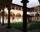 Il chiostro, sul fianco sinistro della chiesa, fu sCostruito nel corso del seicento  su di un precedente chiostro del XIII secolo, ha forma rettangolare. Il piano terra è composto da arcate a tutto sesto e volte a crociera, mentre il loggiato del piano superiore è formato da colonne che sorreggono le travature del tetto sovrastante.