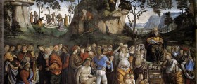 Nel Quattrocento Roma, dopo un lungo periodo di decadenza e impoverimento artistico, tornò all’antico splendore grazie alle opere commissionate da pontefici come Sisto IV della Rovere (1471-84) e Alessandro VI Borgia (1492-1503). Papa Sisto IV chiamò i migliori artisti dell’epoca per restaurare vecchi edifici e costruirne nuovi. Per il suo mecenatismo fu soprannominato “restaurator urbis”; al lui si deve la fondazione del Museo Capitolino, che ospitava gran parte della statuaria romana, e la Biblioteca Vaticana. Durante il suo pontificato fu costruita l’omonima Cappella nei Palazzi Vaticani, su progetto di Baccio Pontelli. Per decorare la Cappella Sistina, il pontefice chiamò a Roma i migliori artisti della scuola fiorentina e umbra: Sandro Botticelli, Domenico Ghirlandaio e Cosimo Rosselli insieme all’allievo Piero di Cosimo da Firenze, al cortonese Luca Signorelli, a Pietro Perugino e Bernardino Betti decorarono nel 1481 la nuova struttura. Il programma iconografico illustra le storie di Cristo e di Mosè. Luca Signorelli dipinse il Testamento e la morte di Mosè, nel 1482. L’affresco si distingue stilisticamente per il ritmo pacato nella rappresentazione dei personaggi, per i quali si nota lo studio accurato che l’artista ha svolto sulla statuaria romana: il personaggio seminudo al centro della scena è un richiamo al Torso del Belvedere. Emblematico è la resa espressiva e psicologica dei personaggi, dei quali Signorelli raffigura la commossa partecipazione all’evento.