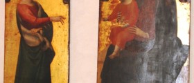 Due pannelli cuspidali facenti parte di un grande polittico smembrato e raffiguranti, rispettivamene di santa Caterina d'Alessandria nel pannello più piccolo e la Madonna in trono col Bambino, nell'altro.
