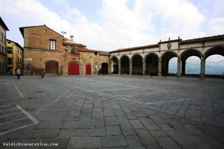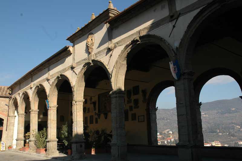 La costruzione del Loggiato sul quale intervenne solo posteriormente il Vasari, risale al 1513. Sui lati chiusi del loggiato si possono vedere gli stemmi dei Commissari e dei Podestà, in terracotta robbiana o in pietra arenaria, mentre gli archi aperti mostrano il bel paesaggio della Val di Chio.