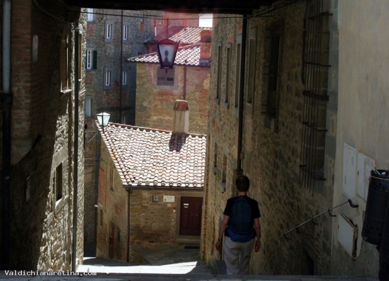 South of Arezzo, almost at the border with Umbria, rises Cortona, on the steep slopes of a hill which leans on the Alta Sant’ Egidio. Cortona was maybe founded by the Umbrians and became very powerful under the Etruscans, is nowadays, one of the main resorts of the province of Arezzo. On its hill, which dominates the Val di Chiana, into a circle of walls which are a monument of rare archaeological importance, with its steep lanes , the cloisters, it is the keeper of the glories of the past, of which it keeps jealously the relics in the museums and in the churches. Rare exemplars of Egyptian, Etruscan and Roman civilizations( very precious among them, an Etruscan “chandelier” with sixteen necks which can be considered one of the most beautiful works of craftwork in bronze of the ancient times)are kept in the Museum of the Etruscan Academy, of which the seat is in Palazzo Casali, an imposing architectural work of the XIII century. This museum keeps, besides ivories, silvers and bronzes, beautiful paintings, among which there are also work by Pinturicchio, Signorelli, Ghirlandaio and Piazzetta. There are also very interesting relics of more recent times like the room of the XVIII century, which belonged to G.B. Tommasi, already master of the Order of Malta. In the ex-Church of Jesus, a sixteenth –century work of great architectural harmony, has its seat in the Diocesan Museum, which keeps the magnificent “Annunciation” by Beato Angelico, some paintings by Luca Signorelli, Pietro Lorenzetti, some ancient relics and precious pieces of goldsmithry. Cortona has also a wonderful cathedral of the XVI century and a splendid church in gothic style, started by the successor of Saint Francesco, the friar Elia Coppi and it is called for this reason “Church of Saint Francesco”. Another interesting church is that of Saint Domenico, built at the beginning of the XV century, with frescos by Beato Angelico and works by Luca Signorelli. But, among all the artistic monuments of Cortona, the most important is considered the Church of saint Maria al Calcinaio, in the middle between Cortona and Camucia, on the southern slopes of the hill of Cortona. Masterpiece of the sienese Francesco di Giorgio Martini, is considered one of the most perfect architectural works of the Renaissance. Among the interesting monuments, we have to remember the Town Hall with its tower and the Palazzo del Popolo, rising in the wonderful “Piazza della Repubblica”. Cortona was the motherland of saints and artists. Here lived Saint Margherita, were born Luca Signorelli and Pietro Berrettini. Saint Francesco founded here the Hermitage of the Celle, and Beato Angelico left here some of his most beautiful works.