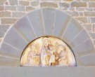 Da segnalare, da un punto di vista artistico, la lunetta in terracotta che sormonta il portale, raffigurante la Madonna col Bambino ed Angeli, attribuibile a scultore toscano della scuola del Rossellino.