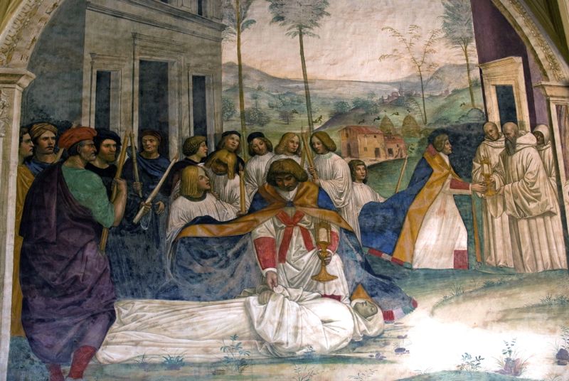 33 - Come Benedetto fa portare il corpo di Cristo sopra al monaco che la terra non voleva ricevere