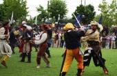 La rievocazione prosegue con il mercato che viene saccheggiato e devastato dai Lanzichenecchi, preludio della battaglia che vede impegnati tutti gli armati dei vari gruppi storici.