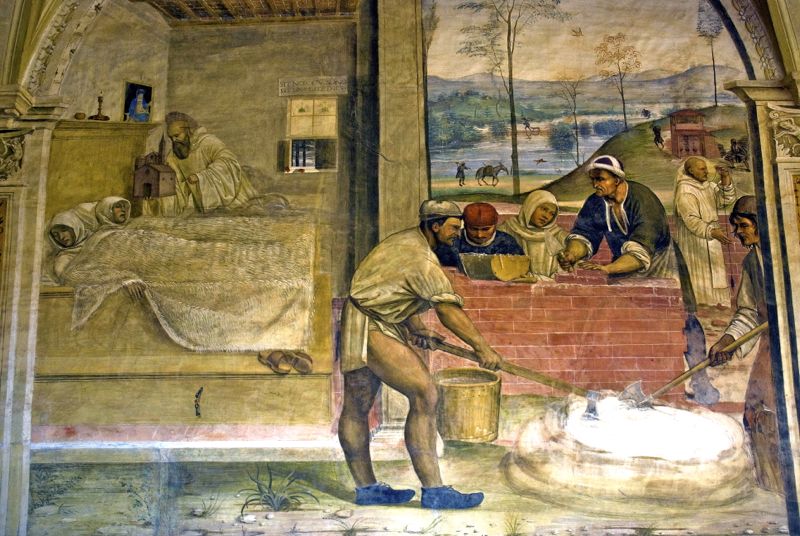 31 - Come Benedetto appare a due monaci lontani e loro disegna la costruzione di uno monastero