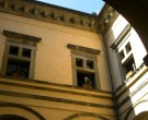 La sobria facciata del palazzo, rivestita a piano terra a bugnato in pietra serena e caratterizzata dalle belle finestre con lesene ioniche, riflette nella sua compostezza lo stile di Raffaello.