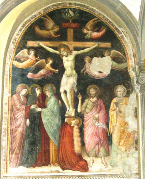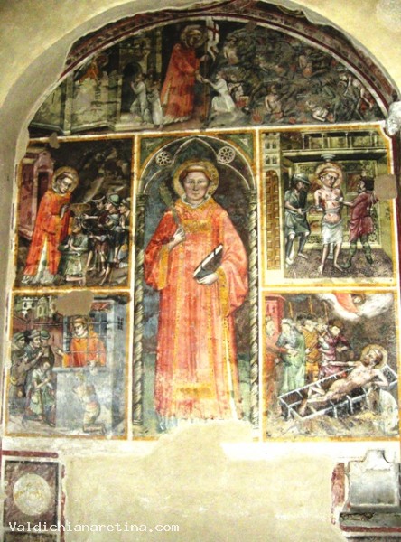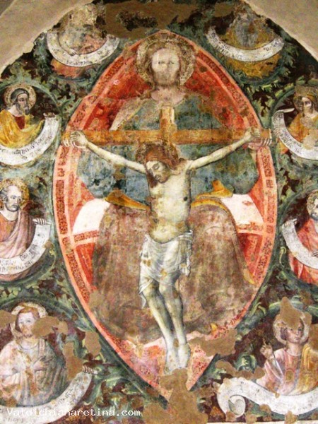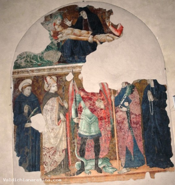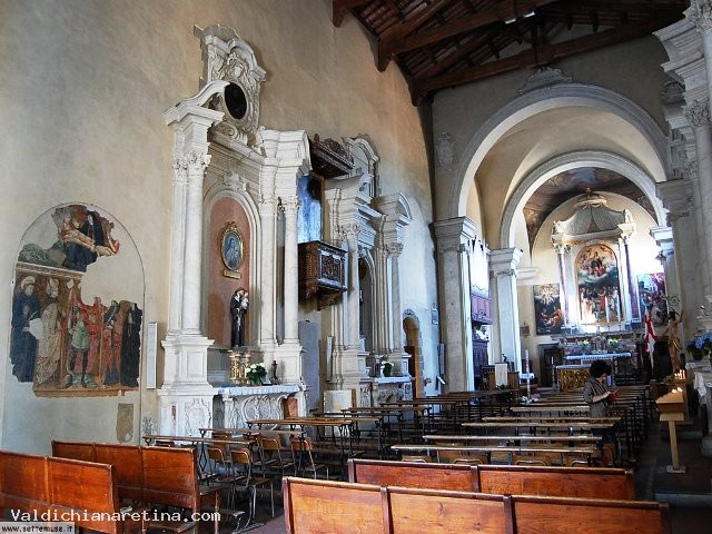 All'interno, a navata unica e copertura a capriate, si trovano gli affreschi di scuola di Spinello Aretino (inizio del XV secolo), quelli di Paolo Schiavo, Pietà e santi (seconda metà del Quattrocento) e quelli di scuola fiorentina (secoli XIV-XV). Nel presbiterio, una Assunzione di Giorgio Vasari (1539).