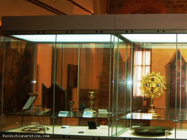 Assai interessante è la Croce degli inizi del Duecento, tra le più antiche testimonianze della pittura in territorio aretino. Vi è raffigurato il Cristo trionfante eretto sulla croce e con gli occhi aperti, secondo la più antica iconografia bizantina. Un'altra Croce, di scuola umbra della seconda metà del Duecento, raffigura il Christus Patiens, secondo un'iconografia consueta nella pittura medievale che tende ad esaltare l'aspetto drammatico della morte del Salvatore. Testimonianza importante della pittura del Trecento di scuola giottesca fiorentina è il frammento centrale di una Maestà di Taddeo Gaddi (1325-1328), che esprime un delicato equilibrio tra toni cromatici e suggerimenti plastici. I vertici qualitativi della raccolta sono le due tavole quattrocentesche di Bartolomeo della Gatta raffiguranti S. Michele Arcangelo, protettore di Castiglion Fiorentino, benedicente e vincitore sopra il drago - e le Stigmate di San Francesco (1486), opere in cui si fondono i richiami all'arte fiorentina, la lezione volumetrica e luministica di Piero della Francesca e gli influssi della pittura fiamminga. Degni di nota sono pure due scomparti di un polittico del senese Giovanni di Paolo con lo Sposalizio Mistico di Santa Caterina (1457), di gusto ancora goticheggiante, e i quattrocenteschi dipinti di Iacopo del Sellaio (La Probatica Piscina) e dello Pseudo Pier Francesco Fiorentino (Adorazione del Bambino con S. Giovannino). Numerose sono le opere di scuola fiorentina del Cinquecento, tra cui la pala con l'Adorazione dei Pastori attribuita ad Antonio di Donnino del Mazziere, allievo del Franciabigio, e la bella Madonna col Bambino e S. Giovannino di Michele di Ridolfo del Ghirlandaio. Per la pittura del Settecento è da segnalare l'ovale con l'Estasi di S. Caterina da Siena e S. Teresa d'Avila (1723), del fiorentino Giovan Domenico Ferretti.