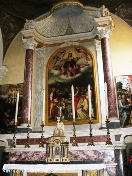 All'interno, a navata unica e copertura a capriate, si trovano gli affreschi di scuola di Spinello Aretino (inizio del XV secolo), quelli di Paolo Schiavo, Pietà e santi (seconda metà del Quattrocento) e quelli di scuola fiorentina (secoli XIV-XV). Nel presbiterio, una Assunzione di Giorgio Vasari (1539).